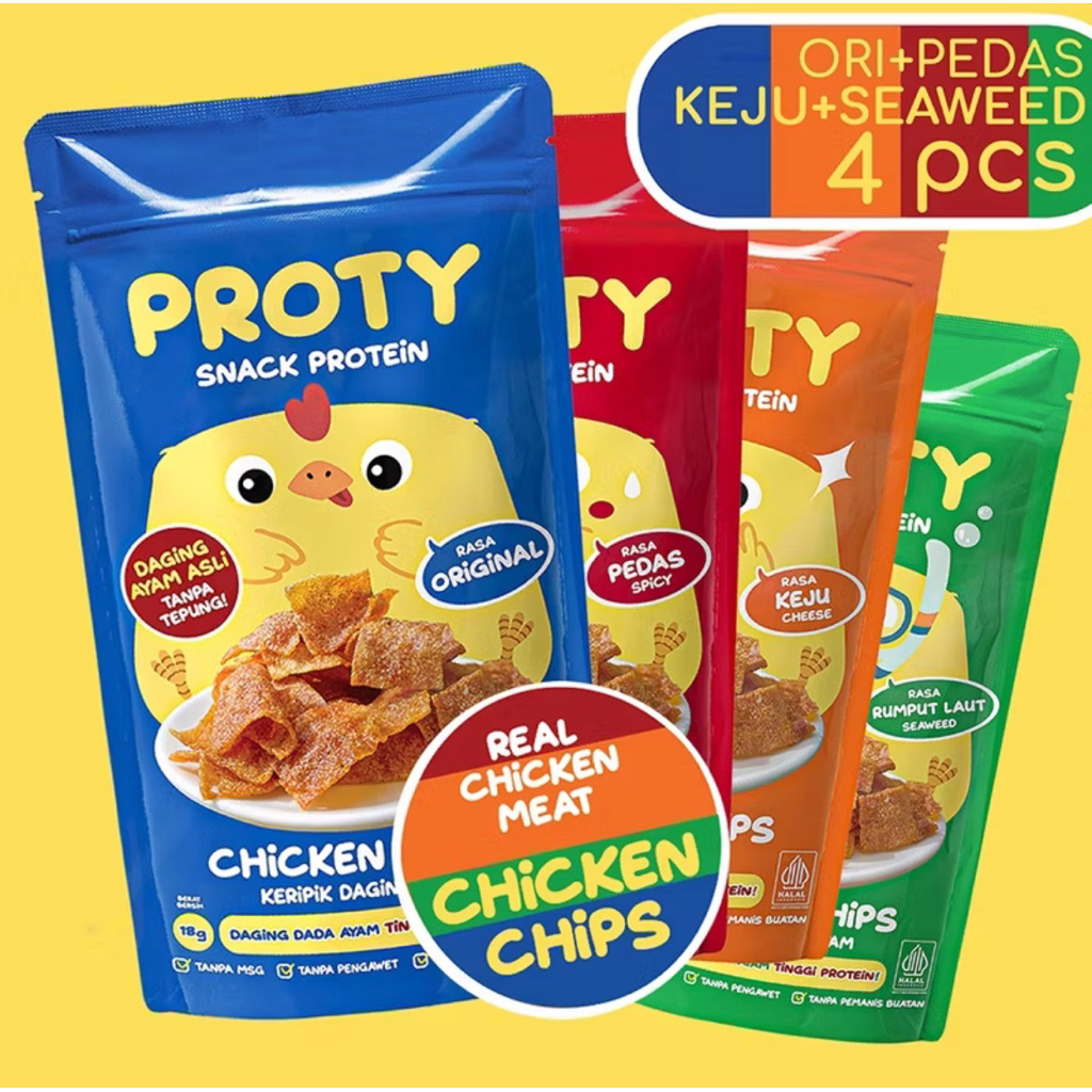 PROTY Chicken Chips Original, Keju, Rumput Laut dan Pedas cocok untuk anak muda dan orang dewasa: