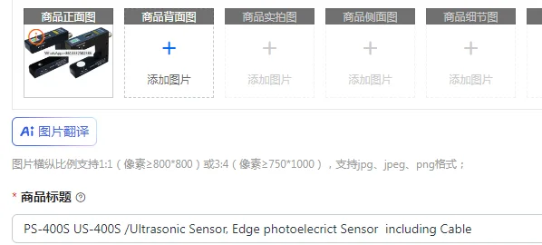 PS-400S US-400S /Ultrasonic Sensor, Edge photoelecrict Sensor including Cable