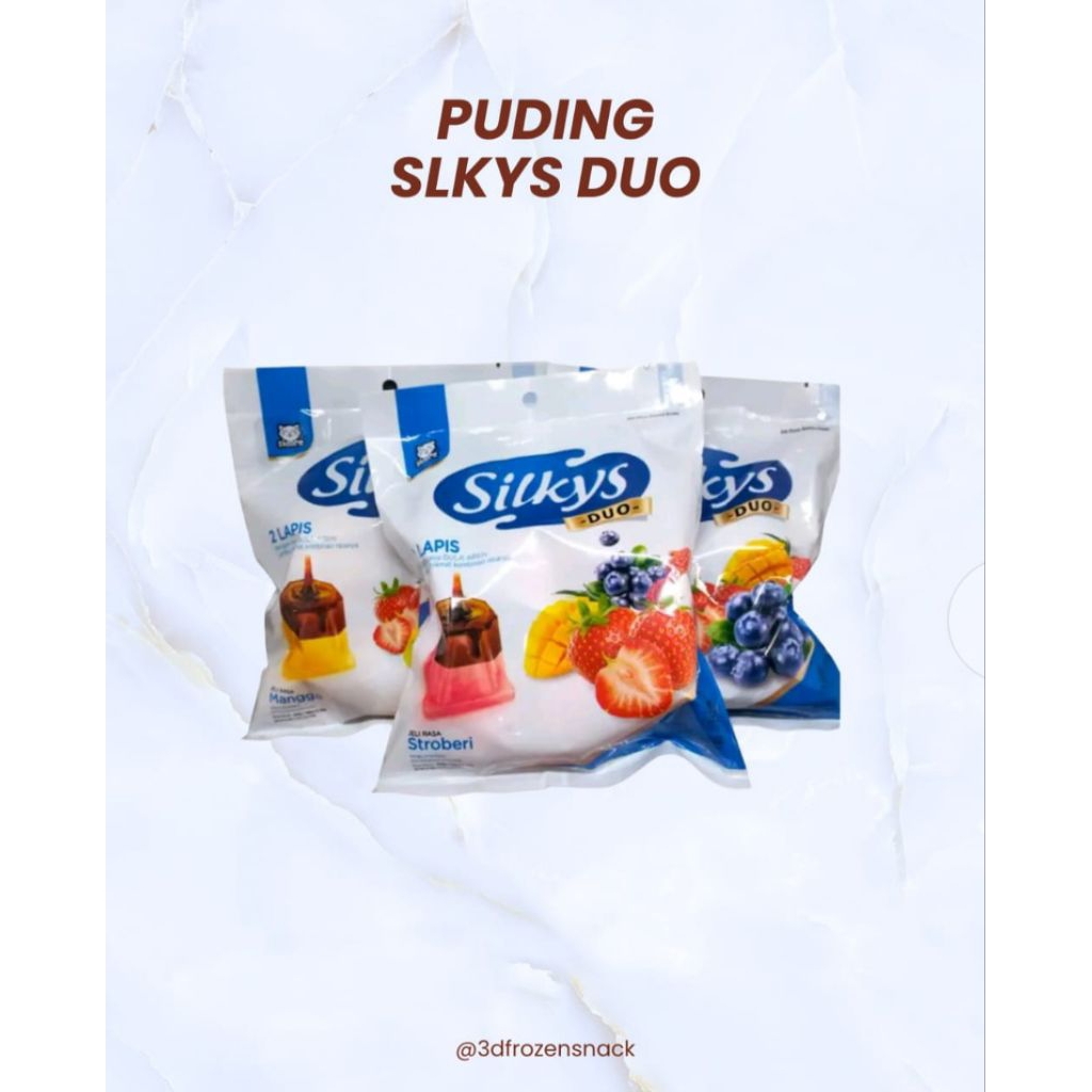 Nikmati sensasi lembut dan manis dari Puding Silkys Duo, puding 2 lapis yang menggoda dengan kombinasi rasa buah segar dan cokelat lezat. Hadir dalam berbagai varian rasa favorit seperti stroberi, mangga, dan mix buah-buahan, cocok untuk camilan sehat di rumah atau bekal sekolah anak.