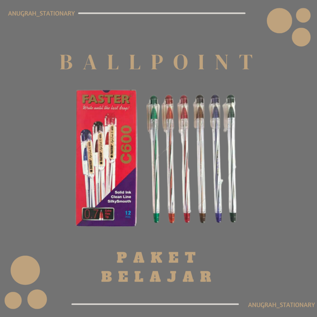 Faster Ballpoint C600 adalah pulpen yang menggunakan tinta dengan kualitas premium, sehingga tinta tidak mudah kering dan warna yang dihasilkan selalu terang. Pen ini memiliki body berbahan plastik yang nyaman digenggam saat digunakan menulis. Ballpoint ini ideal untuk melengkapi alat tulis Anda.