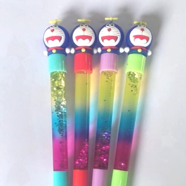 Pen glitter gel motif spiderman dan doraemon