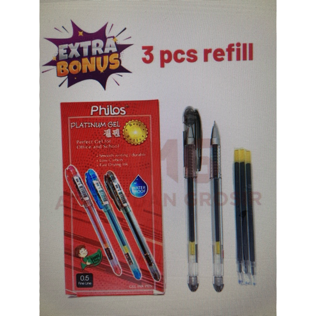 PULPEN GEL PHILOS PLATINUM PER BOX ISI 12 PCS (Free 3 Refill)