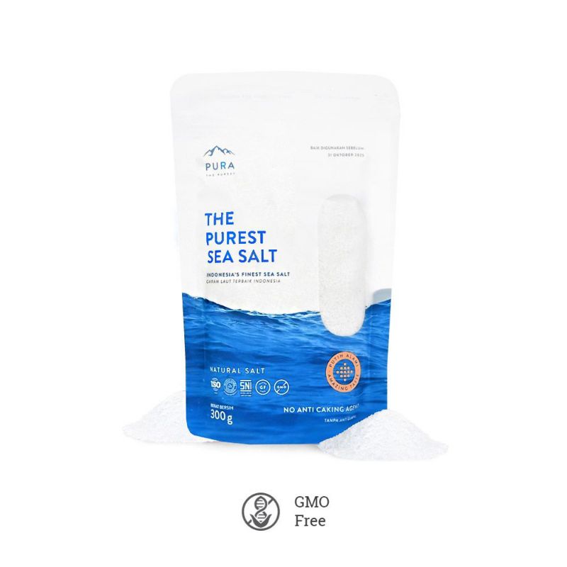 Pura Sea Salt adalah Garam Natural (Unrefined Salt), tanpa melalui proses bleaching, tanpa anti caking dan bahan tambahan kimia lainnya. Diproses secara natural untuk menjaga kandungan mineral yang penting untuk tubuh serta memiliki kandungan natrium yang lebih rendah.