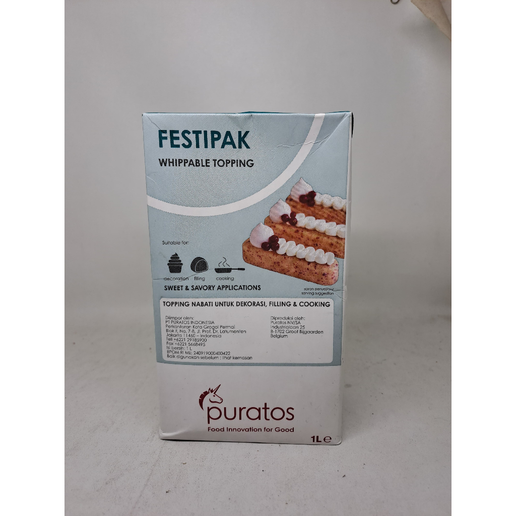 PURATOS FESTIPAK WHIPPABLE TOPPING 1LT - WHIPPING CREAM