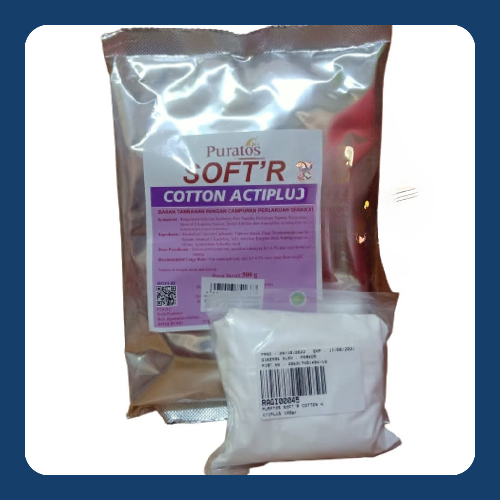 puratos soft'r cotton acti-plus penyempurnaan dalam bentuk tepung untuk membuat roti yg lembut dengan dosis pemakaian 0,5-0,7% dari total berat tepung.