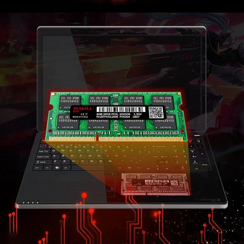 PUSKILL 8G DDR3 RAM 1600MHz 1.35V 204-Pin Computer Game Memory Module, Suitable for Notebook Computer Memory