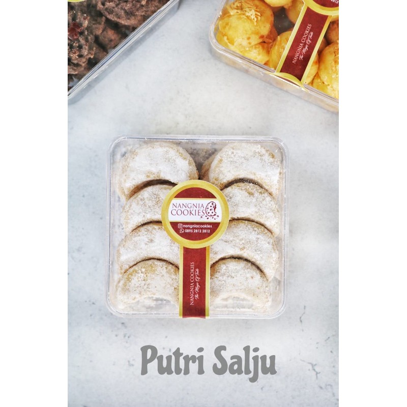 Putri Salju yang dibuat dengan kombinasi antar kacang mede, butter corman yang special serta almond powder. Sehingga memberikan cita rasa yang premium, khas dan lembut.