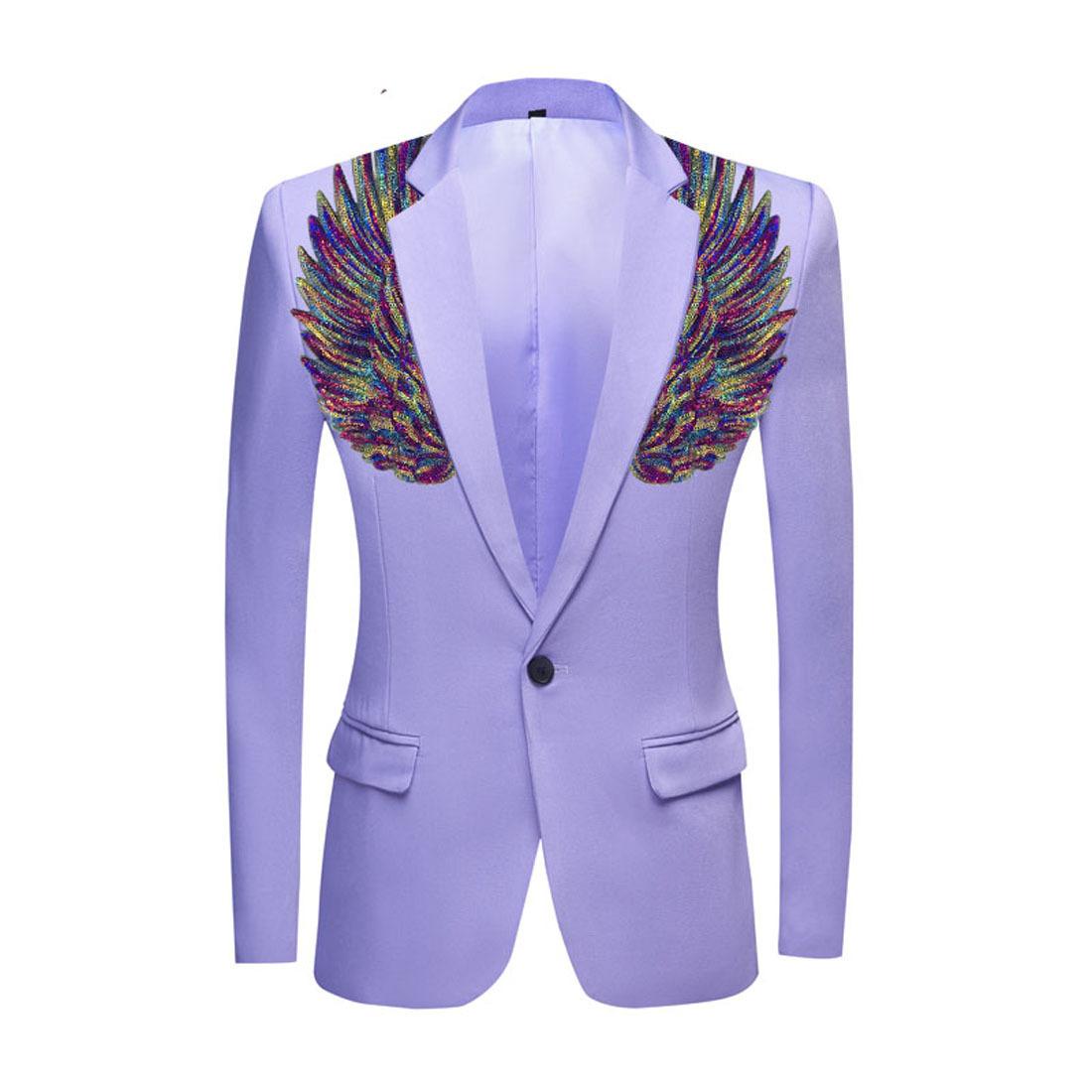 PYJTRL Мужская мода Фиолетовый пиджак с блестками и крыльями Slim Fit Блейзер
