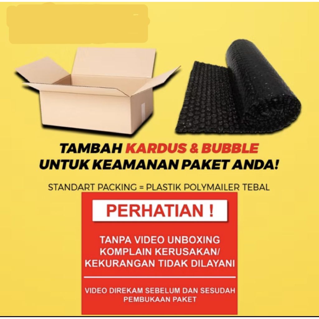 Extra Packing Bubble wrap+dus Agar produk Mu Aman sampai di Tujuan.