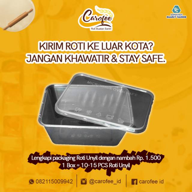 Biar Pesanan Roti Unyil sahabat tetap dalam keadaan prima, ayo pakai Box Unyil ini dari Kami. Sahabat hanya perlu menambah Rp.1.500 Box ini bisa menampung sampai 15 roti unyil sahabat.