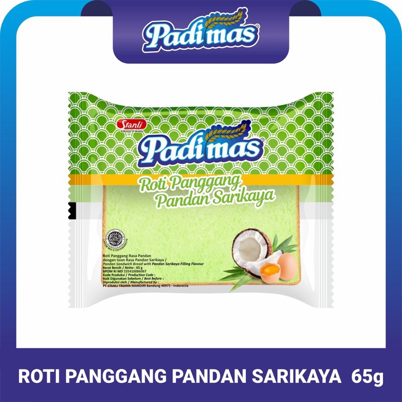 Roti kemasan zaman kekinian yang dikemas secara menarik serta dibandrol dengan harga terjangkau. Padimas Roti Panggang merupakan roti sandwich praktis dengan pilihan isian selai Coklat, Vanilla Susu, Pandan Sarikaya, Choco Banana,Mix Fruits, Keju, Blueberry & Es Teler. Diproduksi secara hygienis yang didukung oleh peralatan mesin produksi berteknologi canggih dan tentunya sesuai dengan standarisasi Badan Pengawasan Obat dan Makanan Republik Indonesia (BPOM RI) dan sudah mengantongi sertifikasi HALAL dari MUI