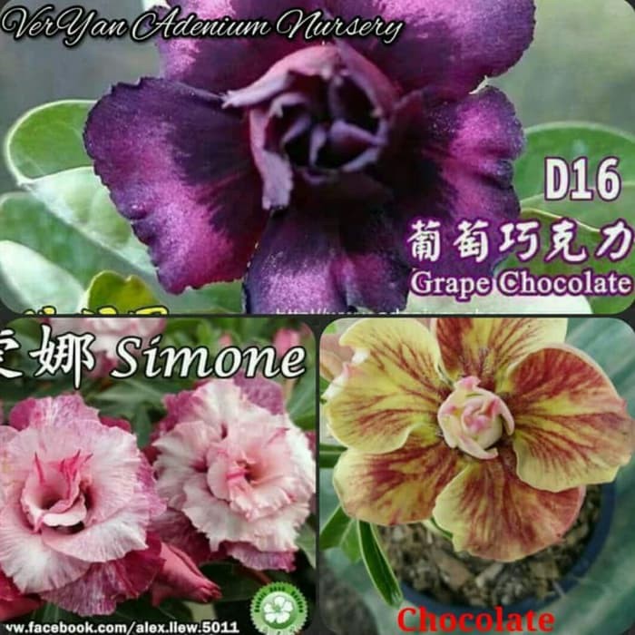 > Paket 3 bibit bunga adenium atau kamboja terbaru... - grape chocolate - simone - chocolate Ready stock.. Bisa langsung dipesan...