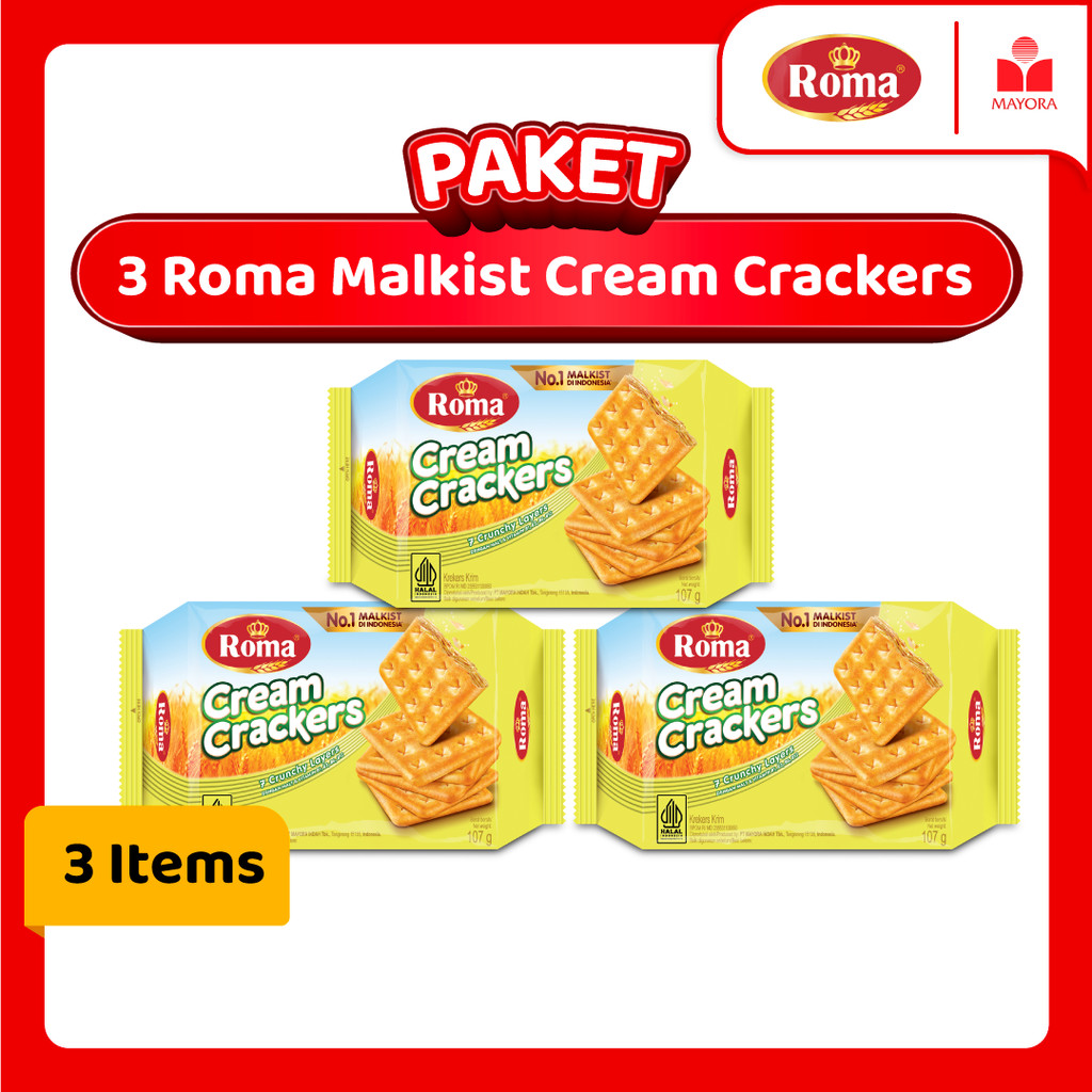 Paket 3 Roma Malkist Cream Cracker 107 Gram