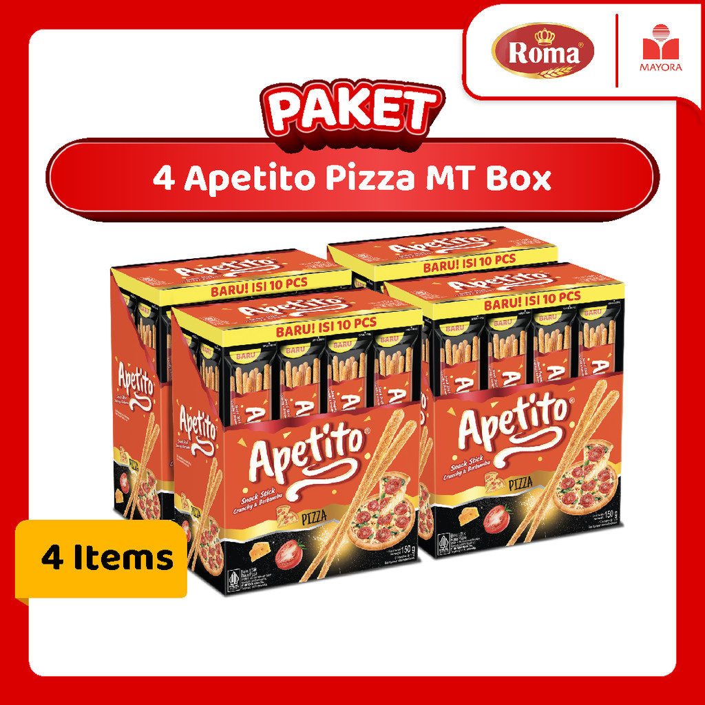 Biskuit Apetito Pizza adalah camilan biskuit stik rasa pizza yang diproduksi oleh Roma. Biskuit ini memiliki tekstur renyah dan rasa gurih yang khas, cocok untuk teman bersantai. Tersedia dalam kemasan kecil yang praktis dibawa-bawa.