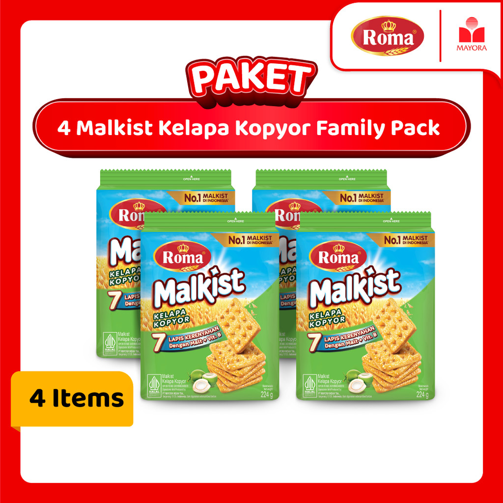 Paket 4 Roma Malkist Kelapa Kopyor Family Pack