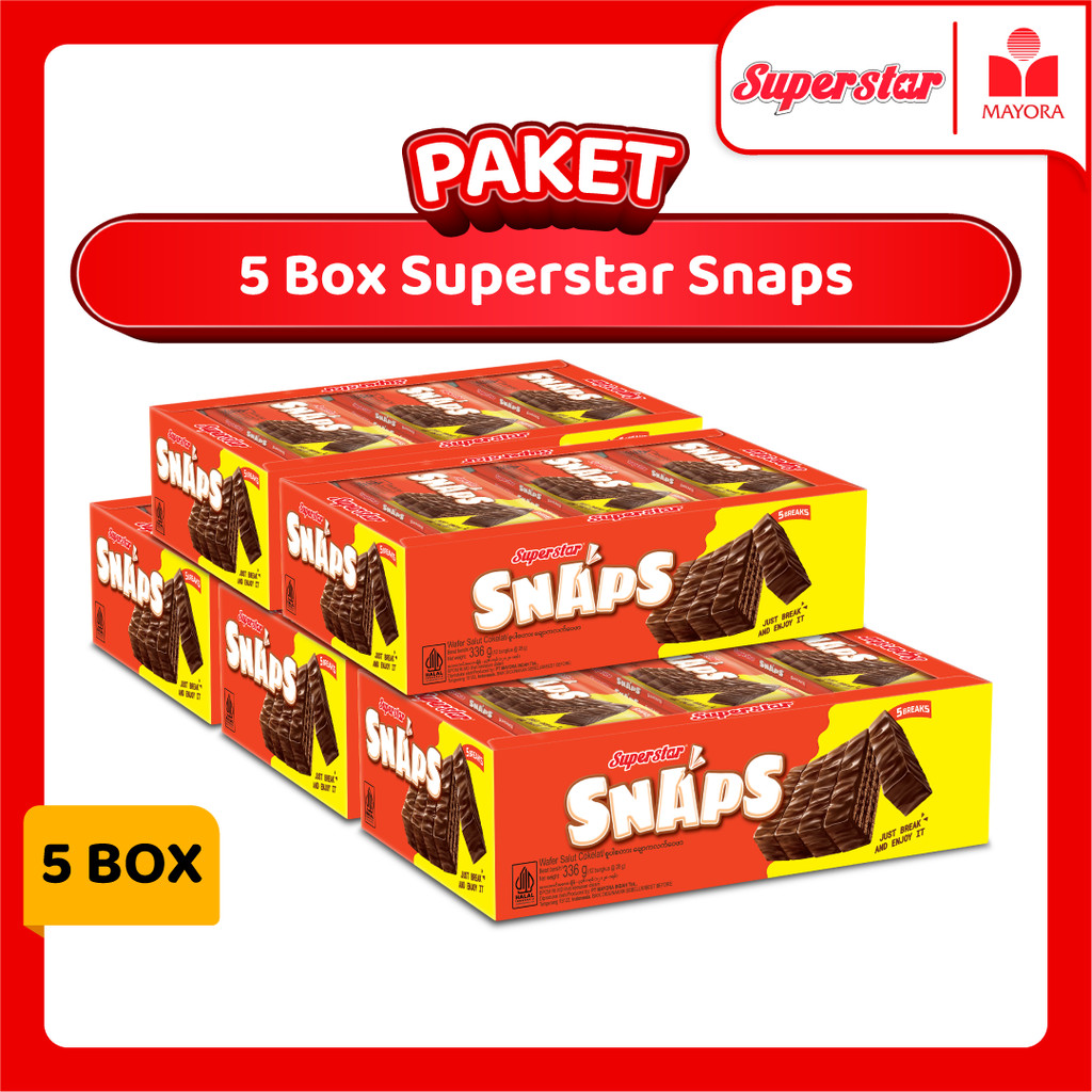 Superstar Snaps, wafer renyah yang bisa di belah 5 zap dalam satu sachet. Wafer stick ini terdiri dari kombinasi wafer krispi, krim cokelat premium yang nikmat, dan susu lezat di setiap gigitannya, memberikan sensasi menikmati coklat premium yang tak terlupakan. Diproduksi dengan teknologi modern dengan bahan-bahan berkualitas sehingga menghasilkan wafer stick sebagai camilan yang pas dan bermutu baik.