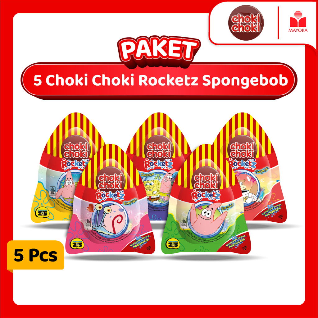 Choki Choki Rocketz SpongeBob adalah camilan cokelat pasta yang dikemas dalam format stik, dengan rasa cokelat berkualitas dan susu krim, serta sentuhan kacang mede (cashew) yang digemari anak-anak. Selain itu, kemasannya juga menampilkan karakter-karakter dari serial animasi SpongeBob SquarePants, yang membuatnya semakin menarik. Ada hadiahnya juga loh..!!