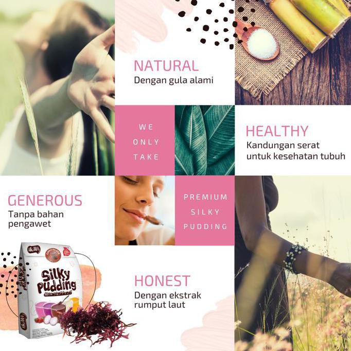 Serbuk/bubuk Silky Pudding selembut sutra asli rasa mengandung ekstrak rumput laut. Cocok untuk dessert dan topping minuman. Lembutnya seperti kembang tahu.