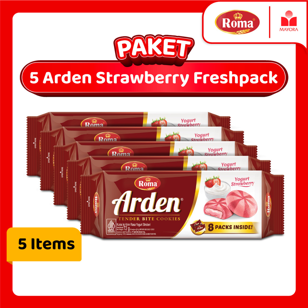 Paket 5 Roma Biskuit Arden Yogurt Strawberry Freshpack
