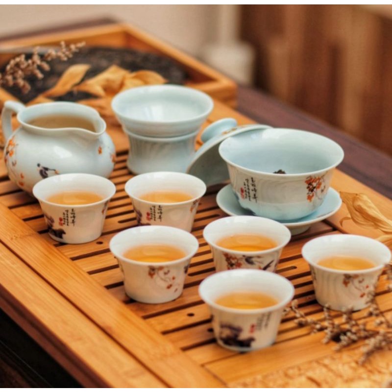 Paket Basic 3 terdiri dari 1 keping teh pu er matang, 1 set teaset keramik, 1 pc tatakan teh dan 1 set papan pemisah teh + jarum teh