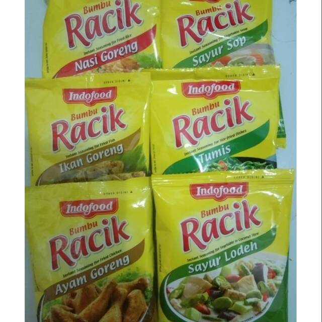 Paket bumbu racik harga lebih hemat untuk 6 pcs bumbu dg varian nasi goreng, ikan goreng, ayam goreng, sayur sop, tumis dan sayur lodeh