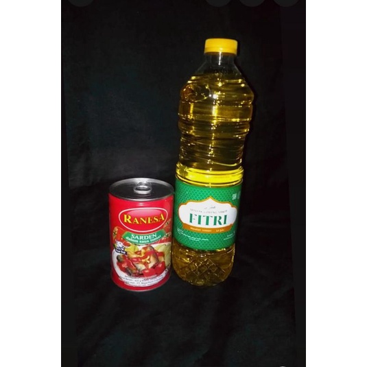 1 liter minyak Fitri kemasan Botol & 1 kaleng Sarden Ranessa berat 425 gr (besar)