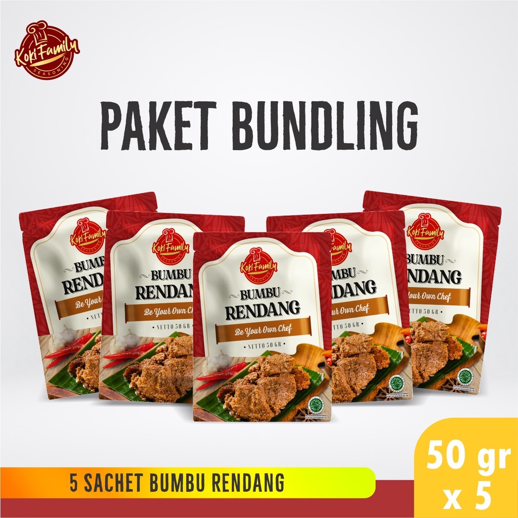 Tidak perlu lagi menyiapkan bumbu-bumbu untuk membuat rendang dengan susah. Hanya siapkan bumbu rendang koki family membuat rendang bisa lebih praktis. Dengan cita rasa rempah khas Indonesia yang tentunya menggugah selera Komposisi: