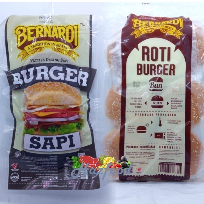 Paket Burger Bernardi 6 pcs (Daging Burger dan Roti Burger @ 6 pcs)