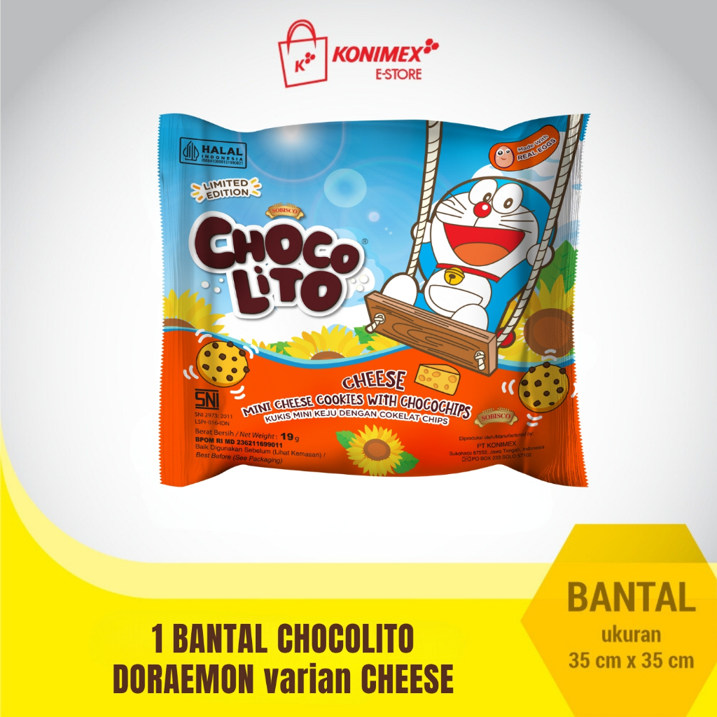 Paket Bantal Chocolito berukuran 35x35 cm dengan CHOCOLITO Kukis mini cokelat dengan taburan cokelat chips.