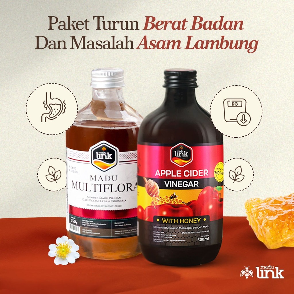 Paket Diet Sehat Cuka Apel Plus Madu dan Madu Multiflora 650ml