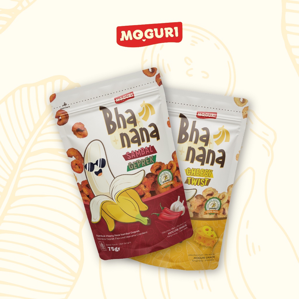 Terbuat dari pisang berkualitas dari hasil bumi kekayaan Indonesia, Moguri Bhanana hadir dengan kenikmatan yang tak tertahankan.