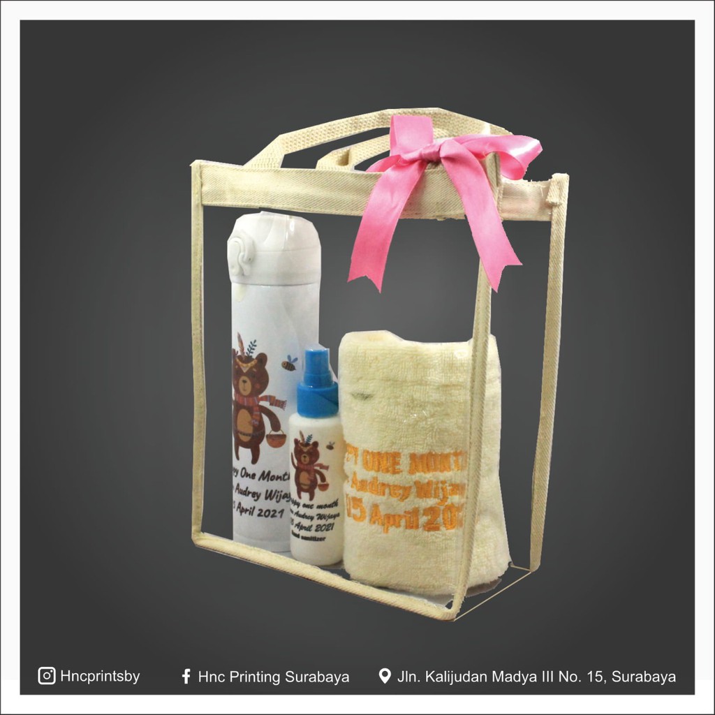paket hemat tenteng custom terdiri dari tenteng mika+handuk+termosdan disenfektan