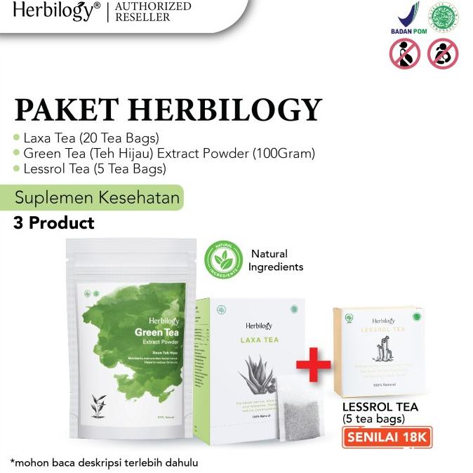 Paket Herbilogy (Isi Laxa Tea, Green Tea Extract Powder, Lessrol Tea)