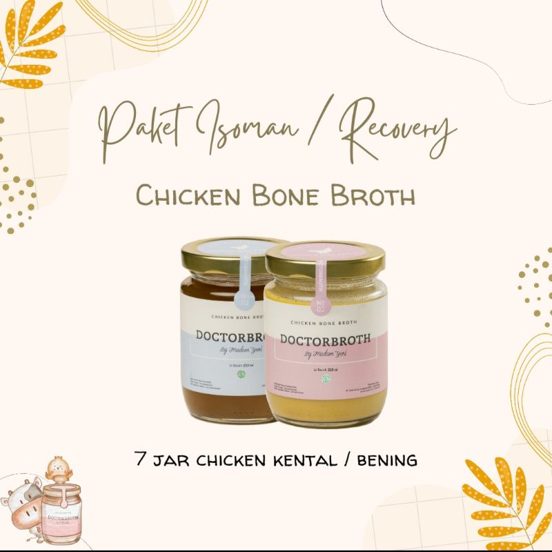 Paket Isoman/ recovery/ pasca operasi , berisi 7 jar chicken bonebroth. TULIS DI NOTE MAU YG KENTAL / BENING. Jika tidak, akan dikirim RANDOM sesuai stok.