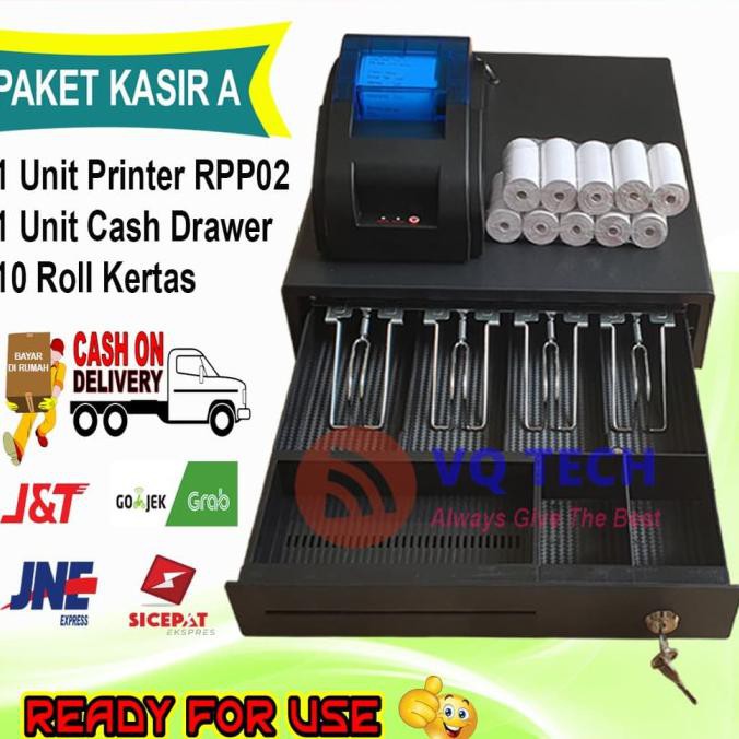 Paket Kasir A Cash Drawer + Printer RPP02 + Kertas Struk 58mm
