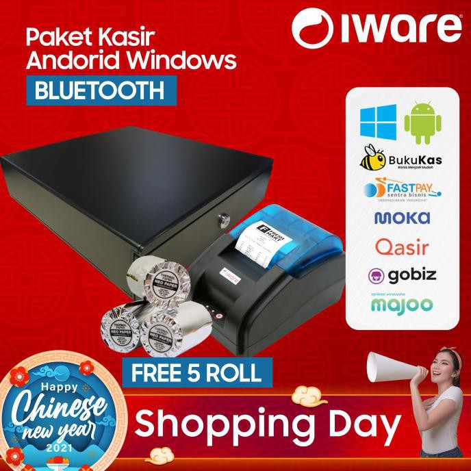 Paket Kasir A Cash Drawer + Printer RPP02 + Kertas Struk 58mm