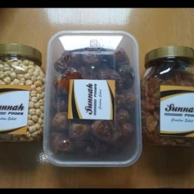 ```Paket ekonomis terdiri dari Kacang Arab, Kurma, Kismis.```