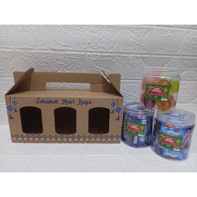 Paket Lebaran ini berisi 3 snack toples 500ml..