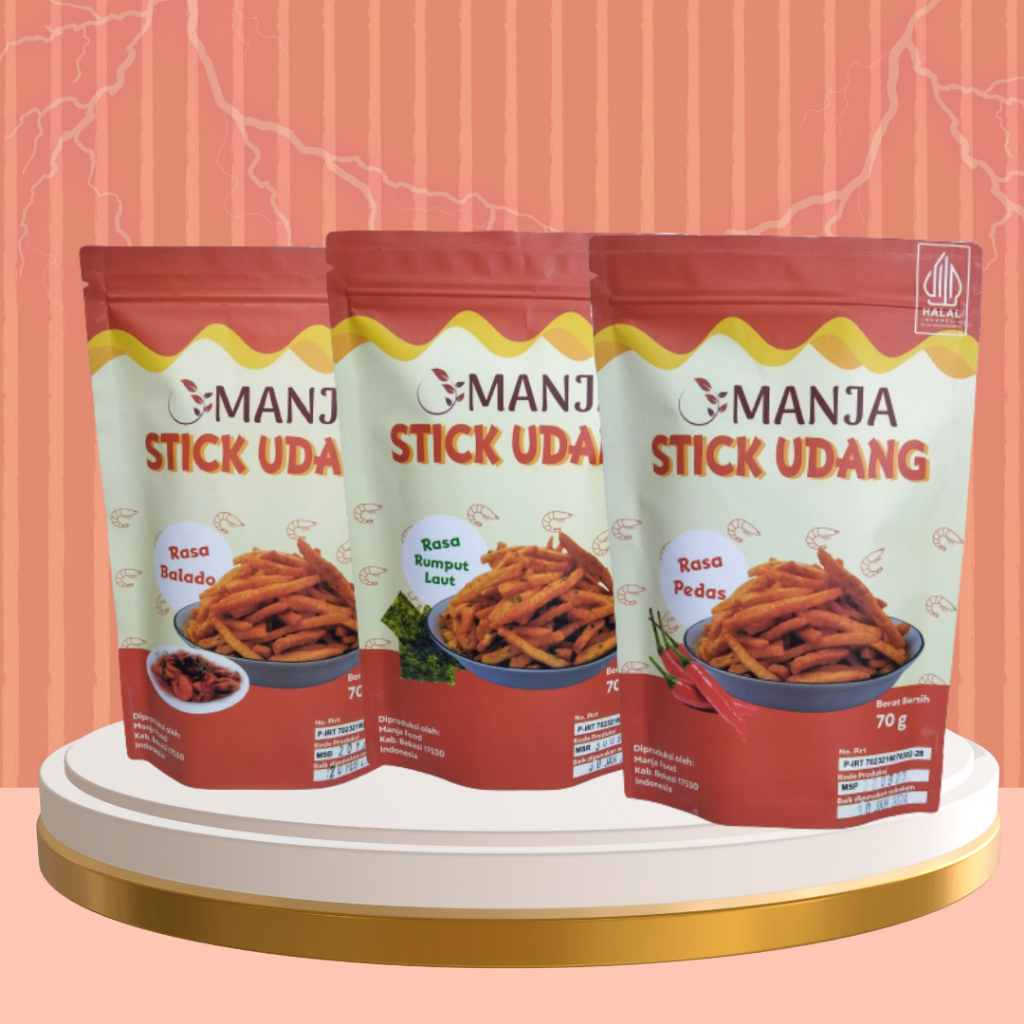 Terbuat dari Udang dan bahan bahan pilihan, rasa udang yang lebih terasa, stik renyah dibalut dengan rasa yang nikmat.