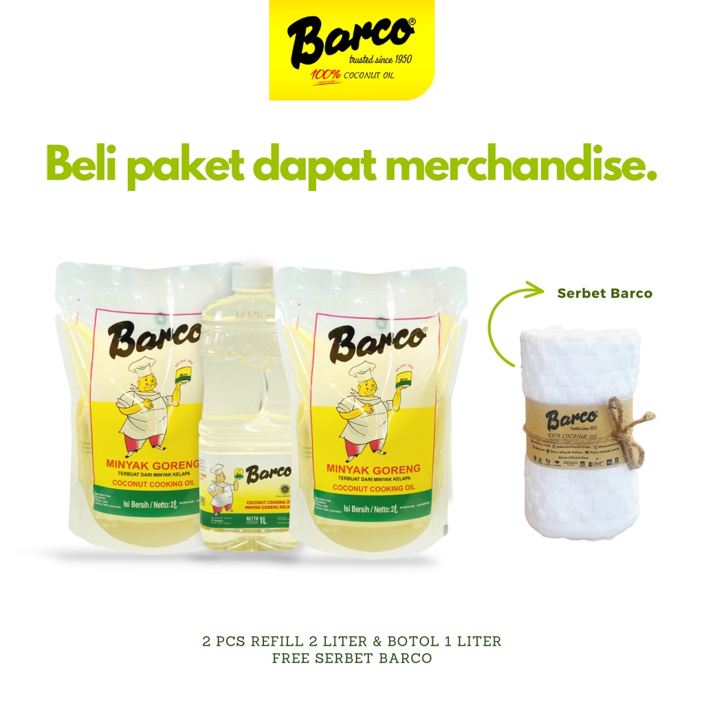 Paket Minyak Barco Refill 2 Liter (2pcs) + Botol 1 Liter Free Hand Towel