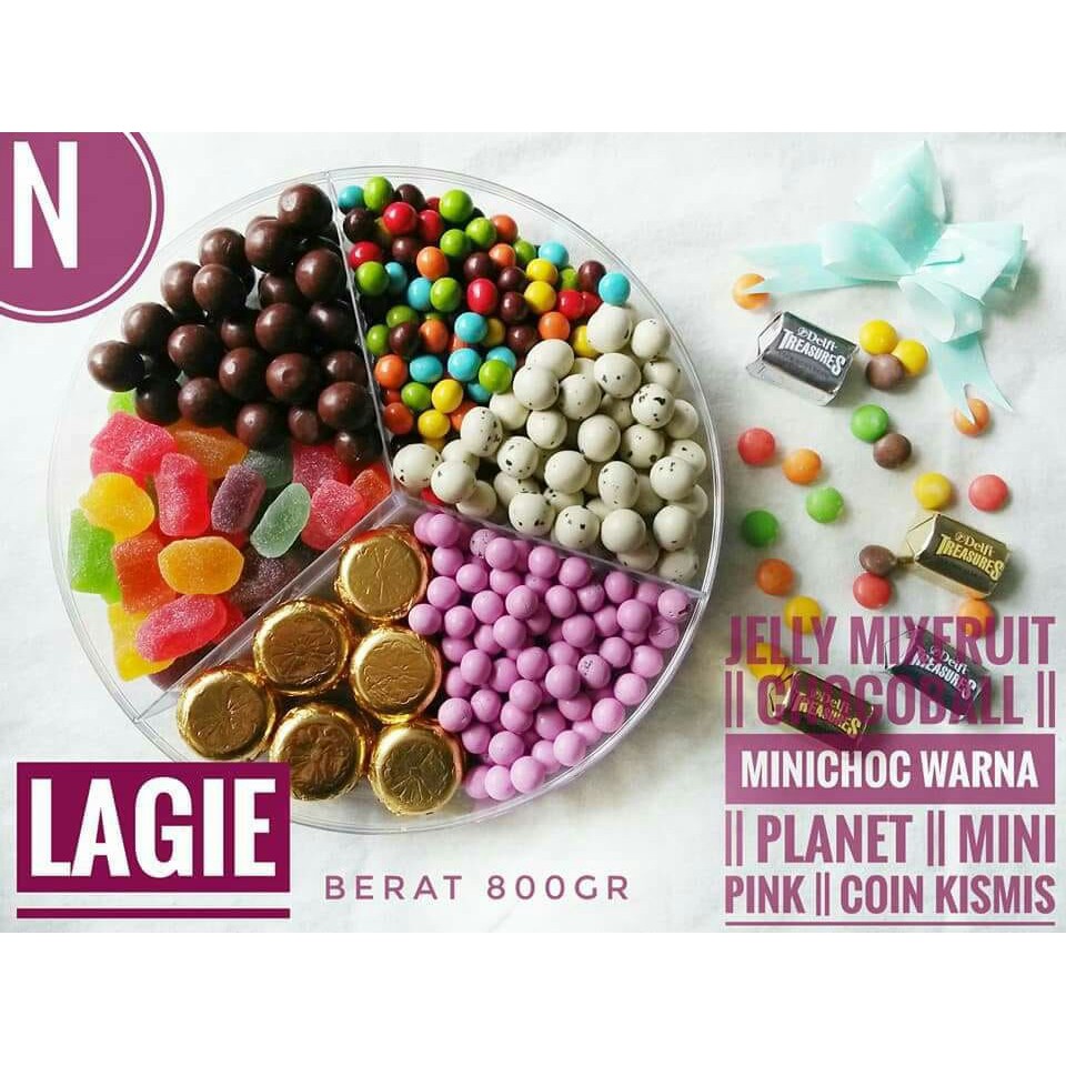 Isi : Jelly Mixfruit, Chocoball, Minichoc warna, Planet, Mini Pink, Coin Kismis