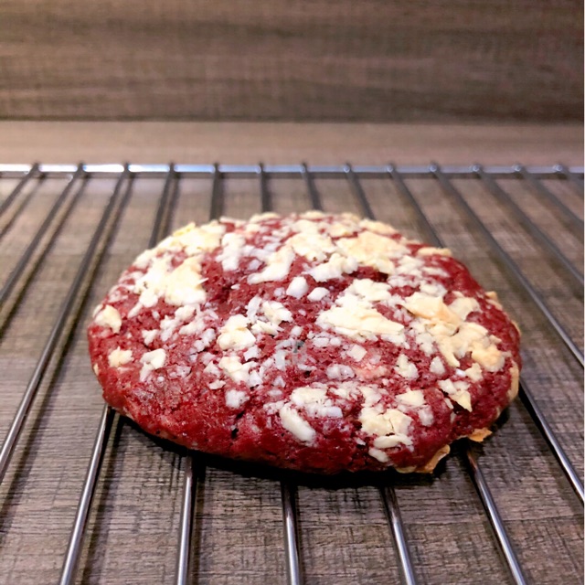 Cookies red velvet dengan isian cream cheese dan toping coklat putih