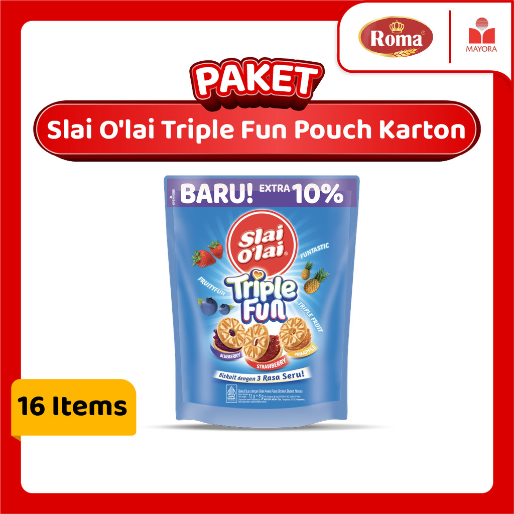 Paket Roma Biskuit Slai Olai Triple Fun Pouch karton