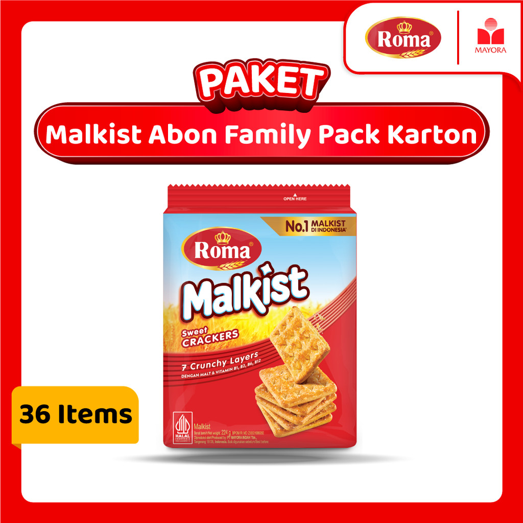 Biskuit menarik yang dicintai oleh seluruh keluarga Roma Malkist Crackers Jadikan teatime sebuah kesempatan untuk menantikan paket Crackers Roma Malkist. Crackers kami diperkaya dengan vitamin B1, B2, B6 dan B12, untuk camilan sehat yang bisa kamu nikmati di mana pun. Produk Roma spesialis dalam kebaikan dan kebahagiaan. Semua produk kami dibuat dengan bahan-bahan berkualitas tinggi untuk membawa kebaikan dan kebahagiaan bagi semua keluarga.