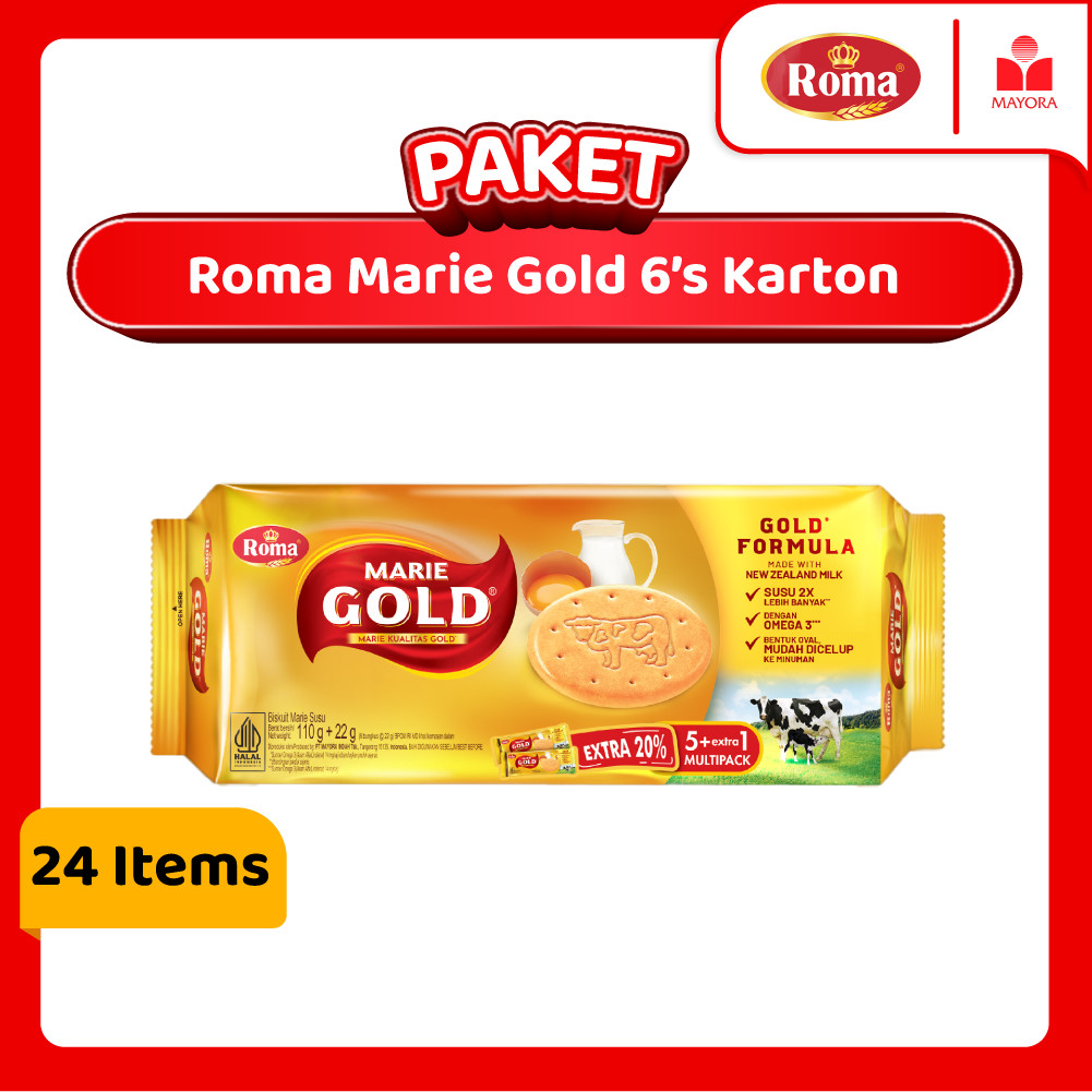 Roma Marie Gold biskuit Marie pertama yang menggunakan susu New Zealand dan olesan telur. Biskuit ini cocok dikonsumsi oleh berbagai kalangan, mulai dari anak-anak hingga dewasa, karena mengandung beberapa nutrisi yang diperlukan oleh tubuh.