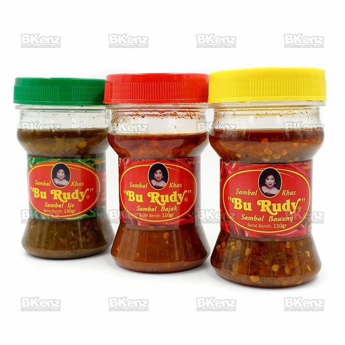 Selain sambal bawang, tersedia juga sambal trasi, sambal ijo, udang crispy, bumbu pecel, kering kentang, dan kering tempe Bu Rudy semua dijamin fresh, langsung dari depot Bu Rudi Surabaya.