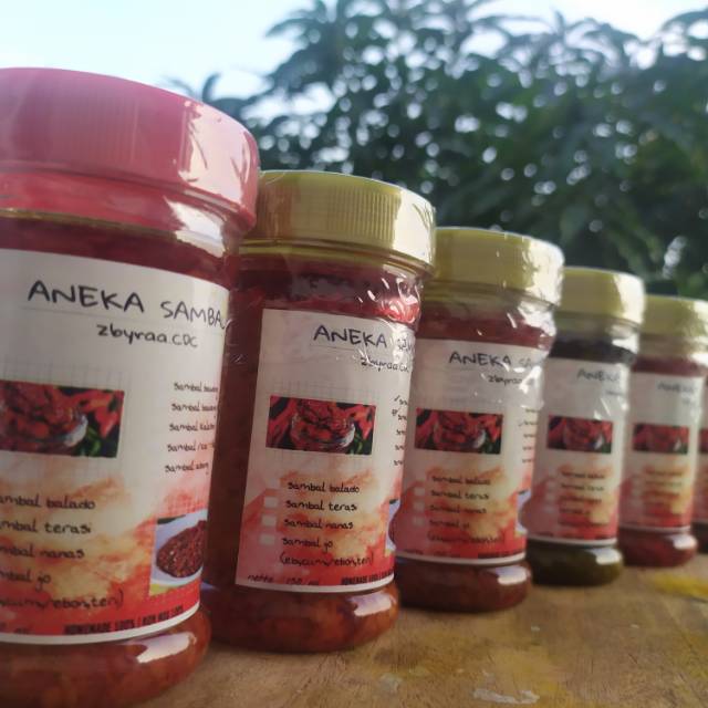 Paket Sambal zbyraa 100% homemade non MSG di racik dengan bahan bahan berkualitas komposisi. Cabe, bawang, gula, garam dll. Perpaket isi 6 botol sambal : sambal bawang , sambal bawang rebon, sambal ijo teri, sambal balado teri, sambal bajak dan sambal Kalasan. Kemasan botol 150gr isi nett 125gr.
