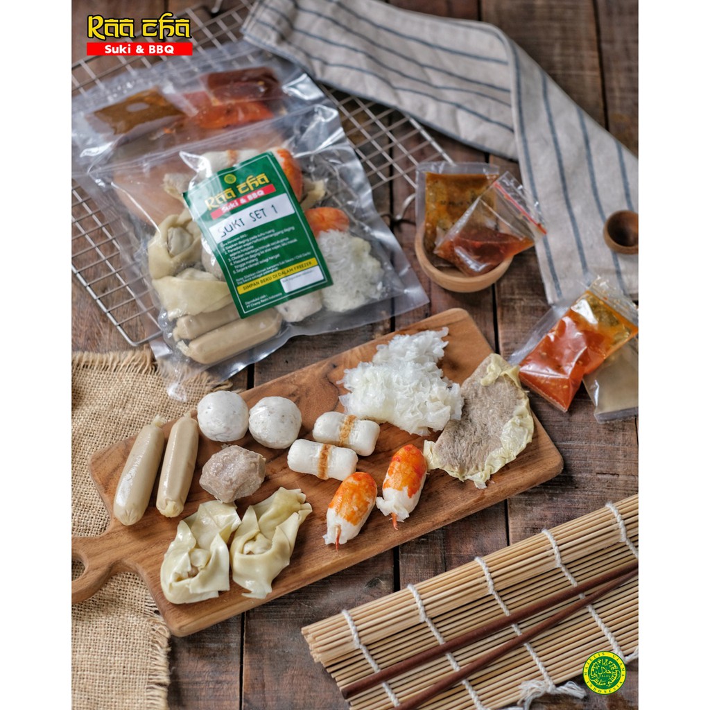 Masing-masing terdiri dari shabu-shabu sesuai foto , kuah tomyum dan kaldu, saus bumbu Raa Cha yang sangat nikmat.