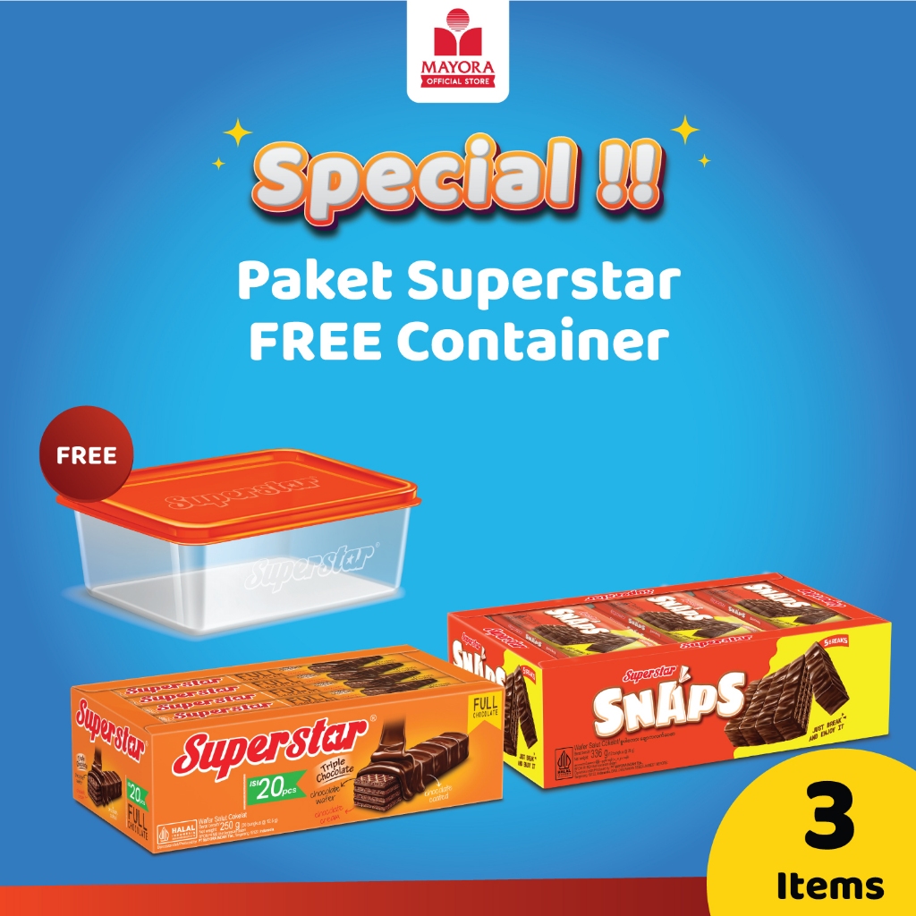 Wafer Superstar Full Chocolate Box merupakan wafer renyah, enak dan ringan yang full cokelat luar dan dalam. Rasa cokelat berkualitas yang hadir dalam 3 lapisan krim cokelat lezat dijamin dapat mengembalikan mood Anda menjadi Happy seharian. Wafer Cokelat dari Mayora ini praktis untuk dibawa kemana saja, diwaktu santai maupun ketika menemani aktifitas padat Anda sehari-hari. Ditambah lagi, Camilan yang banyak disukai anak-anak hingga orang dewasa ini juga cocok untuk dijadikan hadiah untuk teman atau dinikmati dengan segelas teh saat berkumpul bersama keluarga.