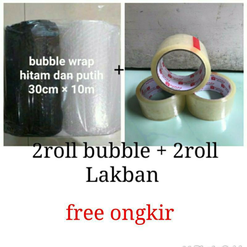 A. bubble bening 2 roll (10 meter x 30 cm) + lakban bening 2 roll